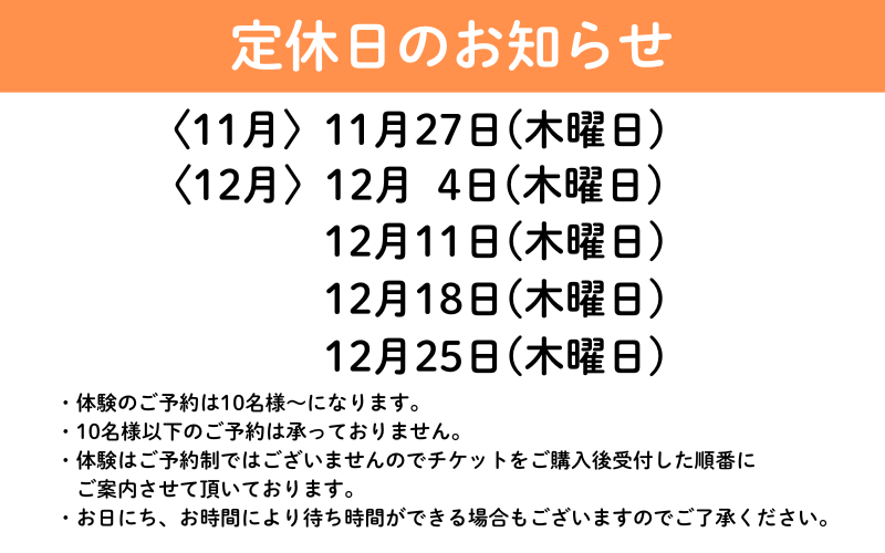 ★ 定休日以外に臨時休業となる場合がありますので、お問合せください。